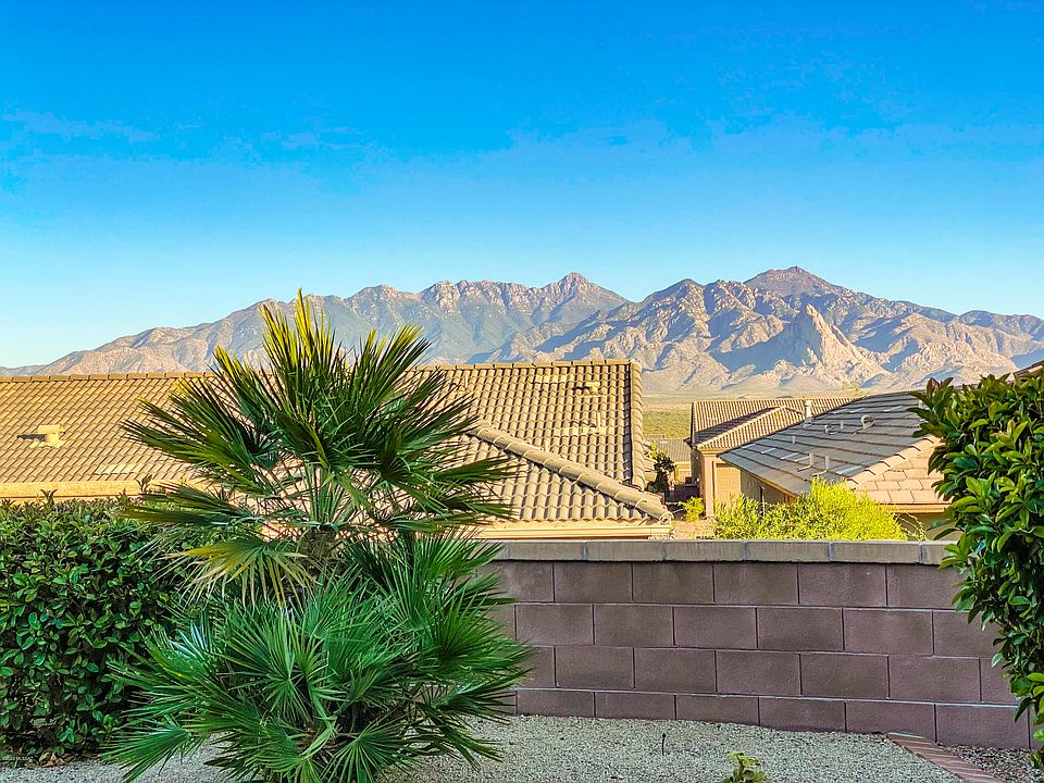 Located in a gated community within walking distance of the Canoa Ranch Recreation Center, this home is situated on a corner lot providing privacy and mountain views! Enter through the front door to find sweeping archways and 10-foot ceilings adding character and a feeling of spaciousness. An arched opening takes you to a dining area or a room that could be the perfect place to keep current with your computer work. You'll appreciate the diagonally set tile, southwest paint colors and plantation shutters elegantly accenting the windows throughout the home. The kitchen has attractive cabinetry, under-cabinet lighting, pull out drawers, gas stove and a serving island for lighter meals and entertaining. Your master suite has a view window and the bath features convenient ''His and Her'' vanities and a built-in makeup station. Flexibility is the key with a built-in murphy bed in the guest room so this can double as a TV room or hobby room too. At the end of the day, relax on your oversized covered patio and enjoy panoramic views as the sun sets and delivers an array of colorful displays in the sky each evening.