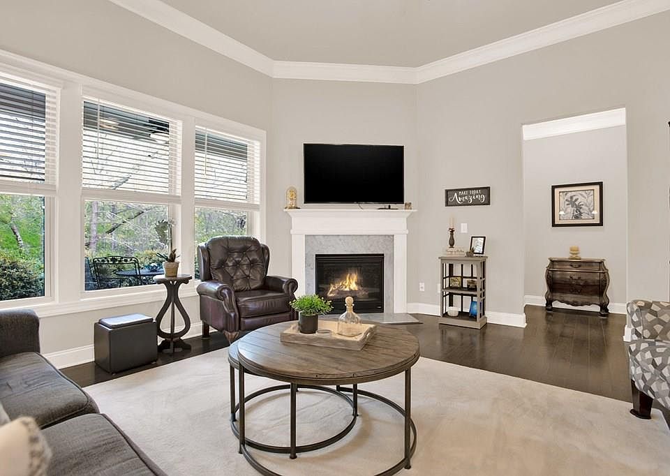 Welcome to your dream home in the heart of Post Oak Glen in Cumming, GA. This beautifully maintained 3-bedroom, 2-bath ranch-style home offers 1,897 square feet of modern charm, thoughtfully designed with comfort and functionality in mind. Step inside to an airy open-concept floorplan filled with natural light, warm hardwood floors throughout the main living areas, and a seamless flow from the spacious living room to the elegant dining area—perfect for hosting family or entertaining friends. The stylish kitchen features ample cabinetry, sleek countertops, large walk-in pantry and a layout that's both beautiful and practical. Retreat to the oversized primary suite, complete with a large walk-in closet, with a large vanity with two sinks, garden tub to soak the day away and a separate tile shower with a bench. Two additional bedrooms offer flexibility for guests, a home office, or hobbies. Storage won't be an issue with an abundance of closets throughout the home. Enjoy peaceful mornings on the patio, fully installed irrigation system keeping your lawn lush year-round. Even better—the HOA takes care of both front and backyard maintenance, so you can spend less time on chores and more time doing what you love, take a swim at the community pool, or stroll through the friendly neighborhood, and the low-maintenance lifestyle you deserve. Built in 2019, this home combines modern construction with cozy comfort in a location that's close to shops, dining, and parks. Don't miss the opportunity to make this inviting house your next home!