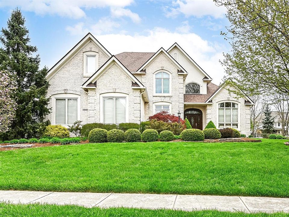 Stunning Setting in Popular Moffit Farm! Pond view with a fully fenced backyd. Extra spacious living spaces include Great Room with expansive windows, Large Kitchen with maple glazed cabinets, ample center island, granite counters & double ovens. Wide plank Brazilian cherry hardwoods. DR is graced by large windows + coffered ceiling. Main floor Office. 4 BRs up 3 Full Baths + Bonus Space. Luxurious Master Ste has corner gas fireplace. Lg Shower w/dual shower heads. Nice sized walk in closet. Walkout Bsmt-- Exercise Room w/rubber flooring, 5th BR w/full bath, Wet Bar + space-->home theater, pool or ping pong. Access fenced bkyd via lg stepping stones, deck off the kitchen, or through the walkout basement. Enjoy the Community Amenities!
