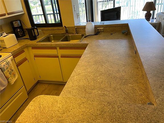 Beautiful Golf Course Views from Furnished Carpet Free 2 Bedroom+ Den/2 Bath end unit in The Hideaway Country Club. NO CDD AND NO CITY TAXES! Gorgeous new flooring throughout unit with "Coastal" look. Perfect for allergy sufferers with no carpet in the unit. (outdoor lanai has carpet) Centrally located in South Fort Myers with new (2017) 14,000 sq ft Clubhouse, pool and restaurant. OPTIONAL Golf membership at $1485 per yr with no cart or trail fees! Small optional fee for tennis and fitness center. Start living in the best kept secret in Fort Myers!