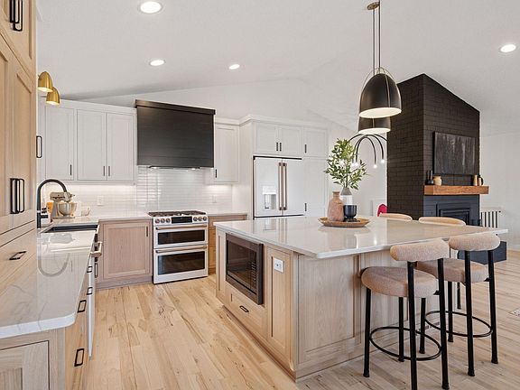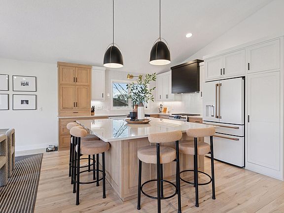 Modern Scandinavian meets the 70's aesthetic throughout the home. Open Concept. Designer High End Kitchen fully remodeled in 2023. All windows replaced Provia Vinyl Windows 2023. Siding replaced LP Smartside 2023. Cloplay wood-look garage door and front door 2023. High End Fixtures 2023. Carpet 2022. New Paint 2023.