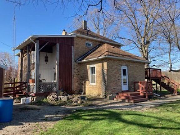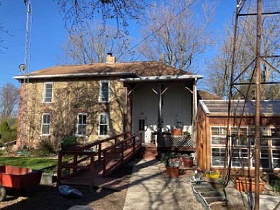 Unlimited potential with this classic early American brick farmhouse built with yesteryears craftsmanship and quality. Upstairs has 3 large bedrooms, living room, full bath and an eat-in kitchen with a huge walk in pantry. There is a large 2 level deck off the kitchen for morning coffee or evening cocktails. Downstairs has 2 bedrooms, formal dining room, separate living room. It has a large eat in kitchen with floor to ceiling cabinets, a built in can cupboard along with a walk in pantry. The full bath has a walk in shower and ample built in storage. There is original woodwork throughout the house including the wood spindle stair bannister and genuine cherry and oak wainscoting along with many updates including a new septic field in 2021 and new vinyl windows upstairs to name a few. There is a large laundry room easily accessible to both units again with built in storage. The impressive 2 story covered porch is built with massive barn beams and overlooks an amish built greenhouse. The 2 car garage sits on a large circle drive. This home sits on 2 acres of impeccably kept perennial flowerbeds, berry patches, mature nut trees, and sugar maples . There is room for everyone here, a growing family, a multi generational family or as rental income when used as a duplex.