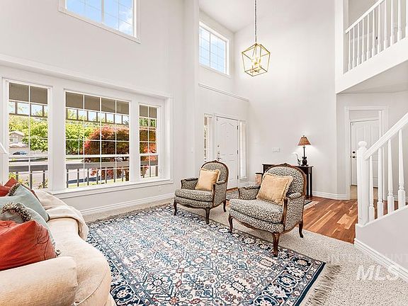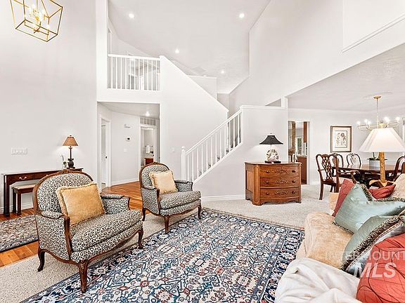 A spectacular lot in sought-after Surprise Valley! With no rear neighbors & direct access to open space, the home’s immaculate backyard is a tranquil retreat. Neatly landscaped with views of nearby basalt cliffs, the space is meant for mindful mornings, quiet evenings, & lively entertaining alike. Set on nearly 1/4 acre in a friendly neighborhood, with lovely curb appeal, you’ll feel at home before even stepping inside. Natural light pours through ample windows. Tall ceilings & fresh neutral paint add to the bright & spacious feel. The kitchen opens into a great room wrapped in windows, with high ceilings, & gas fireplace that lead to covered patio, creating seamless indoor/outdoor flow. Fabulous community amenities include clubhouse and pool, and access to outdoor adventure with acres of open spaces & parks connected by paved paths. Easily commute to work nearby or even downtown, while being moments from Lucky Peak.