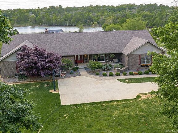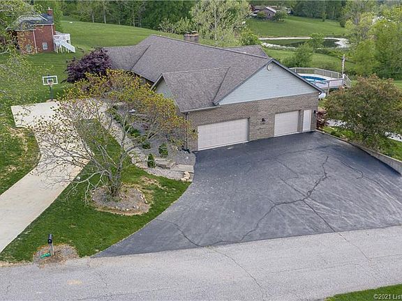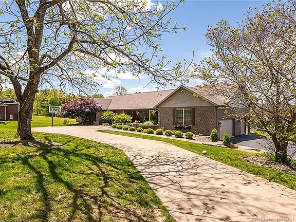 LAKE VIEWS ....First time on market in over 13 years. What a rare opportunity as homes in this area do not hit the market once you live here.. Country living on private lake. 10 Min from I-65, 35 min to Louisville bridge. Walkout basement home is in the quiet neighborhood of Windy Shores on a corner lot and is 5,540 sq feet of which 2770 sq ft is finished. Enormous 3 luxury sized bedrooms and closets. Lg covered front porch that's shaded in the evening and beautifully landscaped. Entrance foyer has tiled floors. Living room has built in bookcase and large windows for lots of natural light. Family room has brick gas fireplace with hearth, bookcases, cathedral ceilings, new floors, and opens to the massive sunroom being used as a dining room for the whole family that has gorgeous lake views. Enjoy cooking in this beautiful kitchen that features center cook island and eat at bar, also has a breakfast nook, desk for holding all your favorite recipes, Large Pantry, enough counter space for anything you need to do. Beautiful stainless refrigerator, new cooktop, built in double ovens. Sunroom has views of the lake. Imagine every season to enjoy with these views. Let me tell you about the Master bedroom: its large w/ private deck overlooking pool and lake. Large walk-in closet. Master bath with separate tiled walk-in shower big enough for two, jetted soaking bathtub, double sink vanity. First floor utility. 2602 sq ft Walk out basement w/168 sq ft finished room in basement.