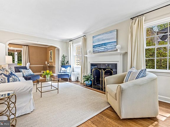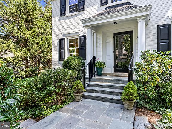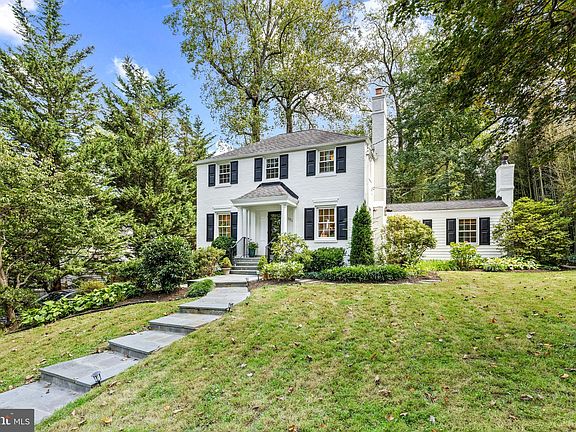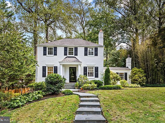 Situated on a beautiful tree-lined street in the highly desirable Woodacres neighborhood of Bethesda, this 4 bedroom / 3.5 bathroom classic white Colonial elegantly sits on a .2 acre lot boasting impeccable 1940s architectural details that blend seamlessly with its modern updates. The main level offers a sun-drenched living room with a wood-burning fireplace, a separate formal dining room with a bay window, a cozy family room with built-ins, another fireplace and second bay window; as well as a renovated eat-in kitchen (2020) that has beautifully updated countertops and stainless-steel appliances with custom panels. The kitchen is flooded with sunlight and includes a built-in banquet under the third bay window for informal dining, a peninsula with seating for two, an abundance of storage and a side entrance door leading down to the driveway. Also on this level is a powder room and a back entrance door to the patio. The upper level features three bedrooms - the corner primary suite with two closets and an en-suite bathroom as well as two additional generous-sized corner bedrooms that each have a closet. Completing this level is a hallway bathroom with a bathtub, access to the attic and a linen closet. The lower level of the home is finished and walks out to the driveway, providing easy access and daylight. There is a recreation room, the fourth bedroom with a closet and separate entrance door to the driveway, a full hallway bathroom and a large utility / laundry room with a new side-by-side washer and dryer (2023). The majority of the home is covered in hardwood flooring and most of the windows have been replaced (2020). Incredibly rare, this home provides a long and paved driveway with parking for 4-5 cars. There is a covered storage area under the side stairs for gardening tools and trash / recycling. The back patio is private and perfect for Al fresco dining and entertaining - looking out into the majestic mature landscaping. Just beyond the patio is an elevated back lawn surrounded by trees. The front lawn is flat and large in scale with lush landscaping on the perimeter. Located just minutes from Woodacres Park, Wood Acres Elementary School, Pyle Middle School and Walt-Whitman High School as well as a short distance to the Capital-Crescent Trail, C&O Canal, Potomac River, Sangamore Shopping Center, Whole Foods, Downtown Bethesda and soon-to-be Westbard Square – the proximity to all your needs does not get any better. Woodacres is a truly charming community with holiday gatherings, parades, neighborhood events and food trucks!!
