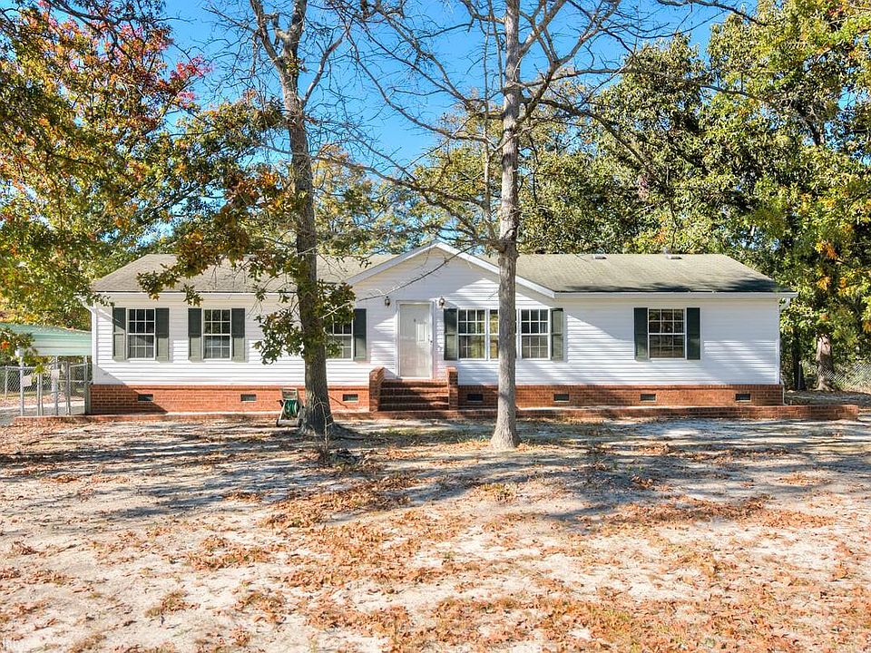 Back on the Market - no fault of seller - buyer financing fell through. If you are looking for a property close to Fort Gordon with a home and acreage – then this one is for you! This modular home is on 2.5 acres located on a corner lot. The property is fenced, and the spacious storage shed, and detached carport are included. Upon walking in the front door, you will love the spacious open concept living with wood-like flooring. Large living area with a wood burning fireplace and sliding glass doors that lead to a sizable deck. There is plenty of room in the kitchen for prepping family meals. This split floor plan offers the primary bedroom on one side and the other two bedrooms and full bathroom on the other side. With a little paint and elbow grease this property can be your forever home. Close to Fort Gordon, many restaurants, stores, Evans and Augusta. Don't let this one get away, schedule a showing today!