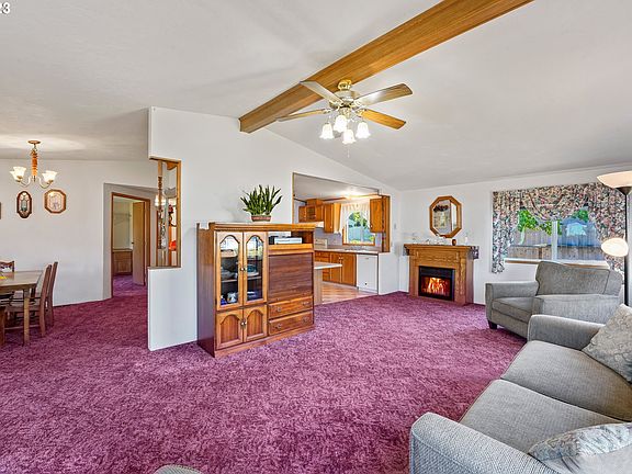 Welcome to this charming and meticulously maintained home that has just hit the market for the very first time. Seller placed it on the lot back in 1988, and now it is ready to welcome new owners who will cherish it as much as they did. Nestled in the desirable Thurston neighborhood, this home boasts stunning views of the majestic mountains and the cityscape. Well-designed floor plan ensures optimal functionality and comfort throughout the house. As you step inside, you are greeted by the warmth of natural light flooding through large windows, creating a bright and inviting ambiance. Vaulted open-beam great room effortlessly connects the living, dining, and kitchen areas, a perfect space for entertaining. Kitchen features a convenient breakfast bar, updated appliances including a built-in dishwasher, and an abundance of kitchen cabinets, offering ample storage for all your culinary needs. The primary suite is a private oasis with vaulted ceilings, providing a spacious and airy atmosphere. It includes a large walk-in closet and a remodeled bathroom featuring a new walk-in shower and plenty of storage space. Third bedroom has been thoughtfully set up as an office room or a guest bedroom. Staying comfortable in all seasons is a breeze with the heat pump and ceiling fans ensuring excellent airflow throughout the home. This property has been well-cared for, both inside and out, boasting easy-care landscaping that adds to the overall charm and curb appeal. For those with vehicles and storage needs, the oversized garage provides ample space for parking and additional storage options. Recently updated with a new roof and fresh paint in 2022, this home has been thoughtfully maintained to ensure its long-lasting appeal and quality. Gutter guards have been installed, offering easy maintenance. Conveniently close to the bus line, shopping centers, the serene McKenzie River, and various recreational areas, providing ample opportunities for outdoor adventures and relaxation.