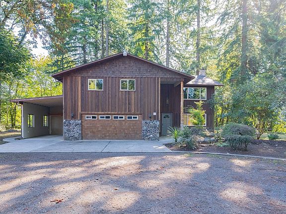Welcome to this one-of-a-kind property where craftsmanship and character meet functionality. Nestled on 3.5 private acres in Battle Ground, this home offers unique touches you won’t find anywhere else—the cedar siding was forged from the very trees on the property, and the stonework was hand-sourced from Mt. St. Helens. Enjoy outdoor entertainment year-round on the covered patio log cabin style from trees grown onsite. Inside, you’ll find generously sized bedrooms upstairs, providing comfortable living space for everyone. The lower level offers fantastic potential for a separate ADU with its own entrance—ideal for separate living spaces, extended guests, or rental income. Outside, this property truly shines with a large shop complete with 220 amp power, a barn designed for RV parking, and a carport for additional covered storage. Gutter guards are already in place, ensuring low-maintenance care. This property blends history, utility, and opportunity—ready for you to make it your own.