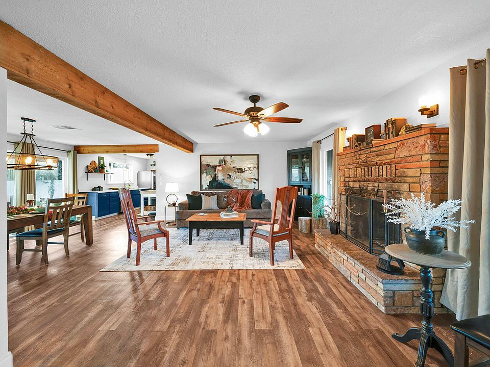 Come and see this move-in ready ranch home with an open floor plan and modern updates! Conveniently located near shopping, dining, and with easy access to I-5, this home offers comfort and accessibility. Enjoy your mornings or evenings on the expansive covered back patio and take in the gorgeous Redding sunsets, as well as the sounds of song birds in the treed open space beyond. Inside, you'll find renovated bathrooms, updated vinyl windows, fresh paint throughout and newer mini-splits for year-round comfort. Step in to the kitchen which boasts stainless steel appliances and solid surface counters with a great view to the backyard. This home combines charm, functionality, and location—don't miss out!