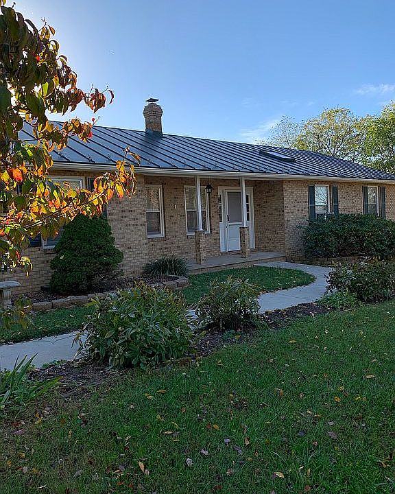 Brick ranch home on 5 acres with garage. Features 2425 square feet. Includes 4 bedrooms (2 upstairs and 2 downstairs), 2 1/2 bath, open floor plan, with hardwood floors throughout. Living room with stone fireplace, new kitchen granite counter top, new dishwasher, new tin roof, new water softener system, new hot water heater, new carpet in two bedrooms, new faucets, new bathroom counter, laundry room with sink tub. Relax on back screen porch, root seller with storage building above, car port, wood stove or gas stove in basement, partially fenced, extended chimneys, fruit trees and two garden spots.
