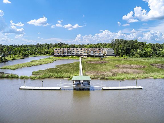 Welcome to one of the most beautiful views in Hanahan!! Located in the luxury deep water townhome community of Dominion Village that includes access to a 200ft community covered dock nestled along the Cooper River and offers direct access to the Charleston Harbor. You will even have your own boat ramp onsite. This well-maintained highly sought after ''END UNIT'' home offers unbelievable waterfront views!Three levels of living space, the main living area features an open concept kitchen that includes granite countertops, stainless steel appliances, gas burning stove, and huge island. 9-foot ceilings, hardwood floors, crown molding, amazing natural light with sunrise from your kitchen and your living room. You can also step out and relax on the balcony from this floor all while enjoying these incredibly picturesque views of the waterways. The home features a 2-car climate-controlled garage (current owner has fit 3 cars in), tankless gas water heater, large bonus room with amazing views of the water. Moving up to the second floor you'll find a spacious master bedroom and ensuite with dual vanity, a custom large walk-in closet, and waterfront views right from your bed. You'll also find a second guest bedroom, full bathroom, and office area. The 3rd floor has an oversized room that gives you an amazing panoramic view of the waterways. This versatile floor is a great flex space that can be easily used as a 3rd bedroom, game room, exercise room or just a family hangout space! Private community dock with views of sunset and sunrise. Perfect way to enjoy waterfront living in Charleston! The community allows boats up to 23ft. Conveniently located, 5 minutes to I26 and I526. 15 minutes to downtown, Summerville, and 10 minutes to Boeing.