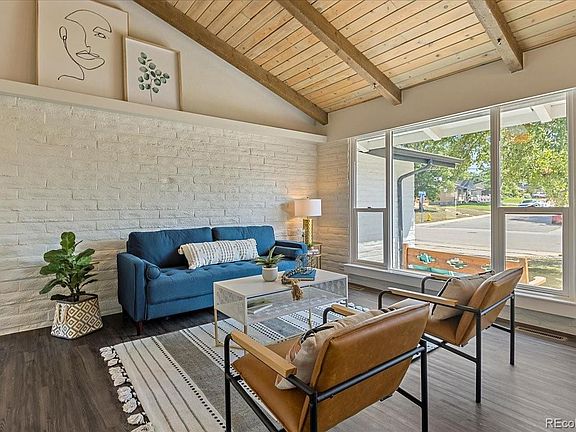 Beautifully remodeled brick ranch located within 10 minutes of Olde Town Arvada, and the Westminster Rail Station. Featuring ~ NEW appliances, interior, exterior paint, flooring, light fixtures, bathrooms, open floor plan with skylights, wood beams, and wood-burning fireplace. The eat-in kitchen is updated with quartz, SS appliances that open up to the covered back deck. Enjoy your coffee on the private side patio or walk down to Hidden Lake or Britton Park. Lots of light in this lovely 4 bedroom, 2 bath, fully finished basement, attached 2 car garage with a spacious driveway, and RV pad. Large garden space with mature fruit trees to enjoy for many years. The storage shed is included too. No HOA! and plenty of room to store your recreation vehicles. (2 basement bedrooms are non-conforming) There is plenty of shopping nearby and easy access to I-70 and everything that Denver, Colorado has to offer.