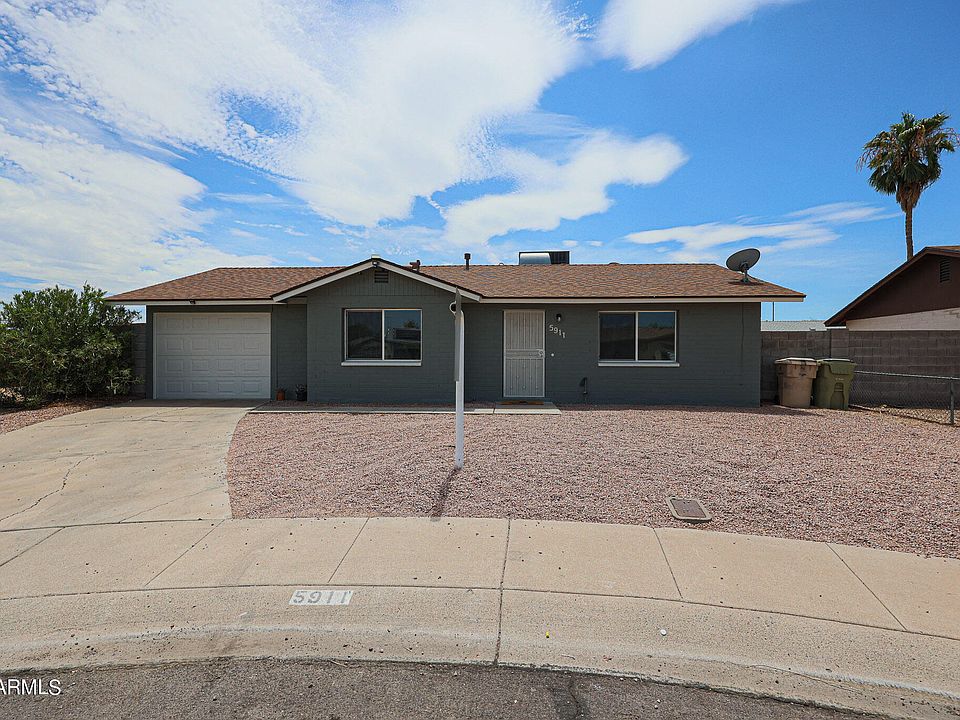 Peoria School District! This cozy 3 bedroom property is located in a quiet neighborhood on a cul de sac. Desert landscaping in the front and backyard. The 130sqft Accessory building equipped with recessed lighting and AC, currently makes a great office space. The roof was replaced in 2015. Fresh exterior and interior paint. New vinyl flooring in the living room, hallways and bedrooms. Dual pane windows. Multiple storage spaces! inside. With its desirable location, charming amenities, and thoughtful details, this exceptional home awaits its new owners to create cherished memories for years to come.