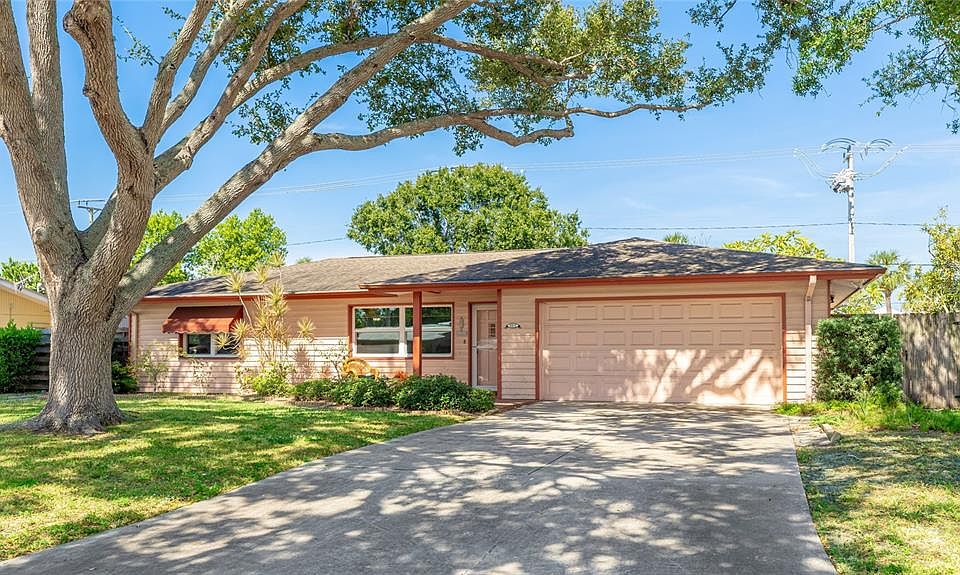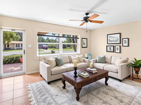 Under contract-accepting backup offers. Discover this charming ranch style 2 bedroom 2 bath home with easy potential for a 3rd primary ensuite bedroom offering 1176 sf of living space just a short walk to grocery stores, shopping and restaurants. Inside you'll find ceramic tile flooring throughout, knockdown ceilings, newer bathroom granite countertops and vanities and an remodeled kitchen featuring solid maple cabinets, granite countertops, stainless steel appliances and a large window overlooking the large private fenced backyard. The spacious family room can easily be converted into a primary ensuite bedroom with room to add a closet or just enjoy it as a dining room or bonus room. Step outside to a 32 x 12 enclosed covered lanai with a tongue and groove wood plank ceiling, perfect for your morning coffee or evening relaxation while enjoying the views of your backyard and pergola. A large 12 x 10 indoor laundry room provides additional cabinet space with a built-in closet for extra storage that you're going to love. Recent updates include new 2016 windows and a garage door. The home's 20 year old roof has no maintenance issues however the new owner will need to take into consideration replacing this due to its age. With no HOA or rental restrictions this home also offers the potential for a primary residence, seasonal getaway or investment opportunity.