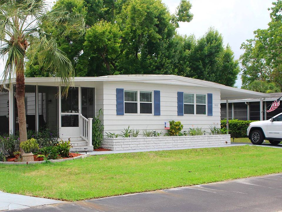 Manufactured Home with an Updo! This elegant 2- bedroom 2 bath manufactured home is a must see! Updated and upgraded from head to toe! In house terms from the ceiling to the floors and everything in between. This is not anything like your typical manufactured home! They say don't judge a book by its cover, this may look like the mobile homes of the past from the outside, but wait til you see the inside, there's nothing traditional about this one. With textured walls and ceilings and modern LED lighting this home emanates the modern 21st century look the moment you enter. Other update and upgrade features of this home include: * Open concept design * Stainless Steel GE kitchen appliances * Granite counter tops * Kitchen Island * Weathered gray wood textured laminate flooring throughout * Crown Molding throughout home * Upgraded wood-grain doors and hardware * New vanity and sink in master en suite bathroom * Tiled walk-in shower with glass door in master bath * Tiled tub-shower in guest bath * Beautifully and creatively decorated * Coordinated color palette and accents * New Samsung washer dryer set * Screened side porch/lanai This home is being offered as partially furnished. With a monthly lot rent/HOA of only $1,114.66(2020) which includes your water, sewer, ad valorem and non-ad valorem taxes (real estate taxes that cover your police and fire departments, streets, street lights etc.) curbside trash collection, both recycle and disposal, lawn maintenance and irrigation and yard waste. And ALL the amenities of the community for your resort lifestyle of living. A newly renovated club house, 2 pools, 2 hot tubs, sauna shower, tennis courts, full gym with all new exercise equipment, ping pong, pickle ball, bocce ball, billiards, and the list goes on. Each month the community holds events such as potluck dinners, bingo, dances, exercise classes, card games, shuffleboard and bocce ball tournaments, socials, planned trips and activities, and much more. All fun and exciting ways to meet and make new friends! A vacation 365 days a year! And you could be living it! You'll never get tired of saying "Its just another day in paradise"! This home is located in one of the most vibrant and attractive 55+ communities in Florida. Situated on 120 lush landscaped acres this private enclave is meticulously maintained and surrounding an interior lake, which is the central focal point in the community. Whether you're an active or quietly retired there's something for everyone! Centrally located to popular attractions, John and Mable Ringling Museum of Art and their mansion home, The Mary Selby Botanical Gardens, Van Wezel Performing Arts Hall, Asolo Repertory Theater. Sarasota's very own Nathan Benderson Park, less than 10 miles away has become one of North America's premier rowing facilities. In April 2016 the park hosted the U.S. Olympic Team Rowing Trials, bringing Olympic hopefuls from all over the country to Sarasota. Siesta Key Beach which is only 7 miles away was voted the #1 beach by Trip Advisor in 2017. Just one of the many beaches that are just miles away along with Downtown Sarasota with its fine dining, cultural centers, shopping, boutiques and art district. You will never be bored! **Owner Financing Available**