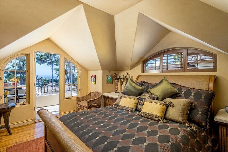 Romantic Carmel By The Sea Get Away. "A Far Cry" from the hustle and bustle of work life. Quality Craftsmanship, prime location 2 blocks from the locals' favorite 13th St beach. A dog lover's off leash paradise, the most beautiful California white sand beaches; brilliant sunsets, occasional dolphins. Radiant Heat, Custom iron railing to a master bedroom w/glorious balcony ocean view to Pebble Beach and a second ocean view sitting balcony. Sleep to the sounds of the pounding surf. Main level deck grants an additional stunning ocean view w/ spiral staircase leading to a hot tub. Living, dining, kitchen areas share views of the Pacific Ocean. Hand-hewn beams w/iron trusses, hickory/pecan floors throughout entire home. Top of the line kitchen appliances, Granite counters, Carmel Stone walkway, patio, front property wall, face of house and indoor fireplace. Grankids? Guests? A downstairs playroom sleeps four. One owner, lightly lived in 2nd residence. Enjoy Carmel's Mission, bistros, shops, Pt. Lobos