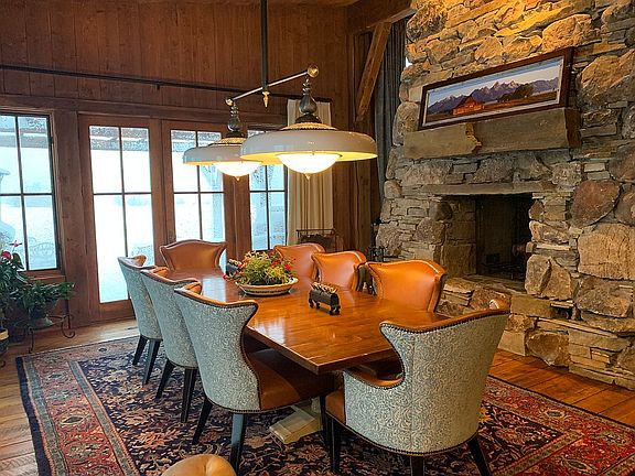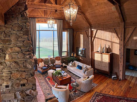 Built to look like one of the historic Teton Barns in Teton National park. Rustic, yet elegant it draws visitors in with its giant two sided fireplace.