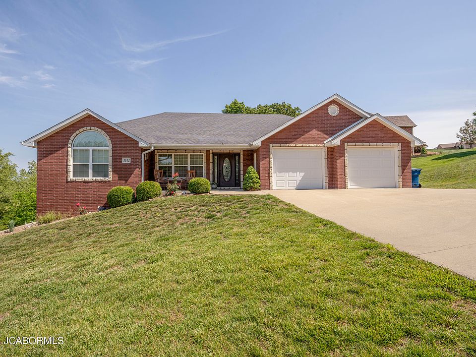 Be amazed by this stately main level living, all brick ranch home with walk out basement, 3800+ sq. ft, 4 bdrms, 3 full baths, & 3 garages located in the Blair Oaks School District. Entering this home you are greeted with the gleaming hardwood floors, vaulted ceilings & open floor plan. Living rm is open to the large kitchen w/ island, granite counter tops, pantry, abundance of cabinets, and eat in dining area. Additional family rm/ four season rm on main level overlooking the exquisit country setting. Split bdrm floor plan w/ a primary suite features double vanity, walk in closet, jetted tub & walk in shower. Gather the friends & family to entertain in this lower lower featuring custom 8 ft long bar, stylish rock gas fireplace, family rm, 4th bdrm, & lower garage. Outside, the add'l concrete pad, TREK decking, side & backyard will be hotest entertaining space for all to hang out! All of this is located in a quiet cul-va-sac.