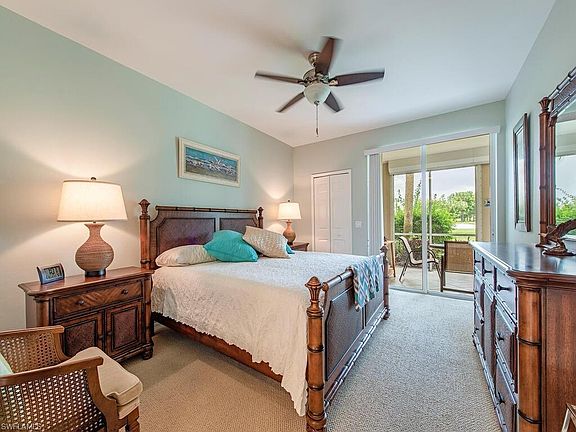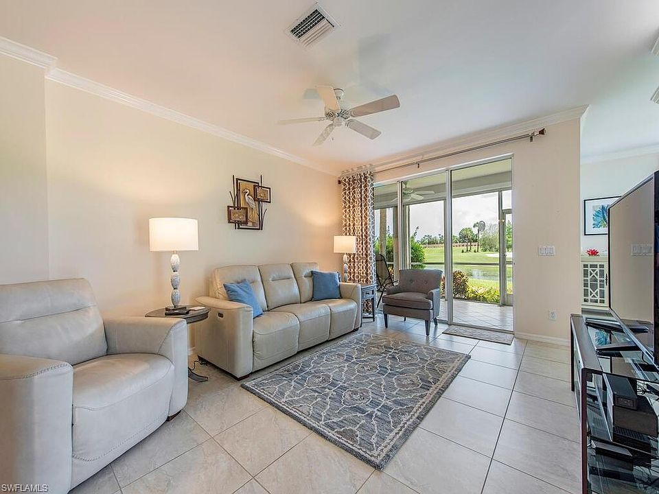 Beautifully updated first floor condo with attached 2 car garage! Impressive views of a serene lake, and the Savannah golf course from several of the windows. There is an exceptional amount of space between buildings which sets this unit apart from most in the neighborhood. Large elegant tile throughout main living areas, and den. There is a pull-out sofa bed in the den. AC installed in 2016. New kitchen appliances, plantation shutters on most windows, newer carpeting in bedrooms, several custom window treatments, storm protection for entire unit, and in impeccable condition. Move right in and enjoy a wonderful Season in sunny SWFL! The Strand offers a convenient location with quick access to I-75,hospitals, and ample shopping/dining options make The Strand an obviously smart choice. All of this is also just a short drive away from sugar-sand Naples beaches.