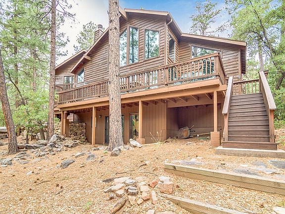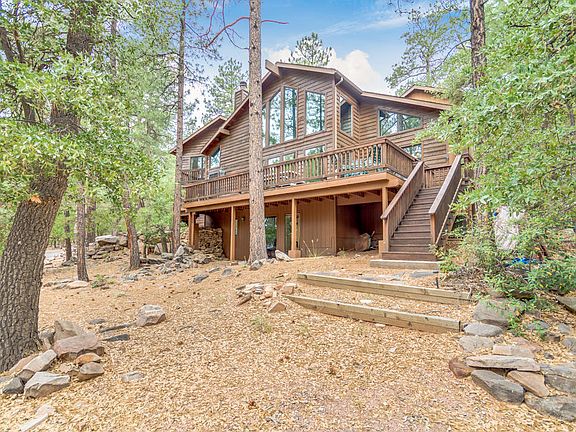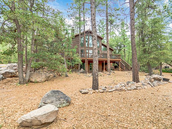 Come escape to the cool Ponderosa pines about 1:40 minute drive north of the Valley to 20 degrees cooler summers and light occasional snowfall in the winter. A great family get away awaits you.Hiking and riding trails close by in this quaint little mountain town with great antique shops and restaurants.This beautiful custom home was built by the builder as his private residence back in 2000. No expenses spared in the construction and the current owners have carried on the stewardship of this home just as the builder intended to do himself. This multi level home offers great spaces for family and friends and you will enjoy years of indoor and outdoor entertainment with the multiple decks, indoor and outdoor spaces.