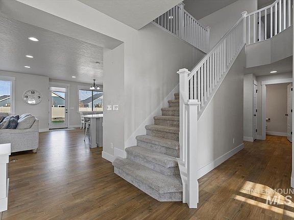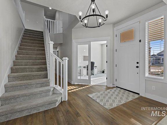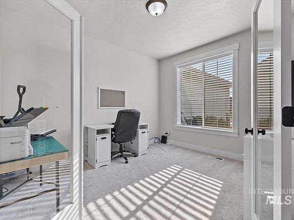 Quick Move-In Ready!! Why wait to build. Beautiful custom built home in the heart of N. Meridian. Meticulously maintained home with quality upgrades and finishes throughout. Home features 4 bedrooms, Primary Suite with a spacious master tub conveniently located on the main floor, Upper Secondary Guest Suite with a full bathroom, 3.5 bathrooms, main floor office with beautiful french glass doors, large loft/flex space, huge oversize garage, extended concrete side space, outdoor firepit and tons more. The community offers interconnected walking paths, green space, community pool, tennis courts, basketball court, playground, and covered picnic space. Close to shopping and dining.