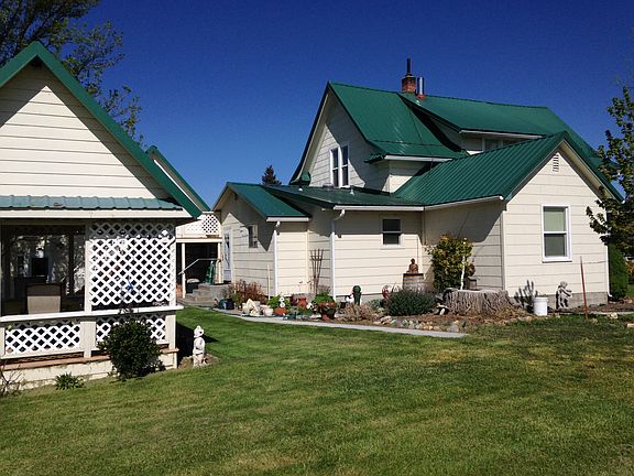 Picturesque farmhouse with 4 bedrooms and 2 baths. Don't miss out on an amazing opportunity to own a hobby farm that could easily become a self-sufficient homestead! Enjoy a fruit orchard, 9.9 acres of farmland, barn, shop, garden, food cellar and hand water pump. This home has been lovingly restored and it shows! Updated metal roof, windows, well, plumbing, plus more. There are three additional rooms that could easily be converted to guest rooms, or possibly a farm stay rental.
