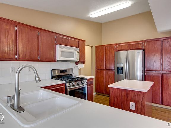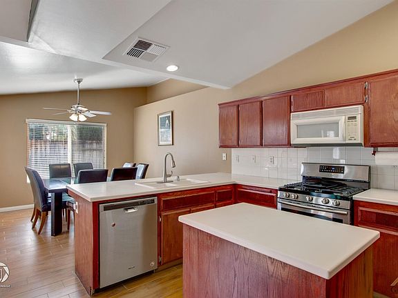 Championship Series in Silver Creek Now Available! This spacious four bedroom two bath home features 1773 square feet, vaulted ceilings in living area with french doors leading to patio, nice open kitchen with bar top counters, large dining area, ceiling fans throughout, wood like ceramic tile floors and spacious bedrooms! Enjoy the perks of a newer AC unit and seller will also be paying off solar to help the new buyer save! This home is perfect for a first time home buyer and is move in ready!