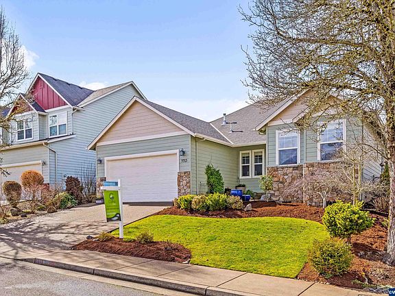 A beautiful 4 bedroom, 2 bathroom home situated in the hills of South Salem. Peaceful Creekside neighborhood. From the front porch, enjoy a mountainous view and serene fountain. Recently updated interior with new carpet, vaulted ceilings and natural light. Wood floors in kitchen and entry. Relax in the spacious primary bedroom including bathroom and walk-in closets, double sinks, step-in shower, and deep jacuzzi tub. Office overlooks the front yard.