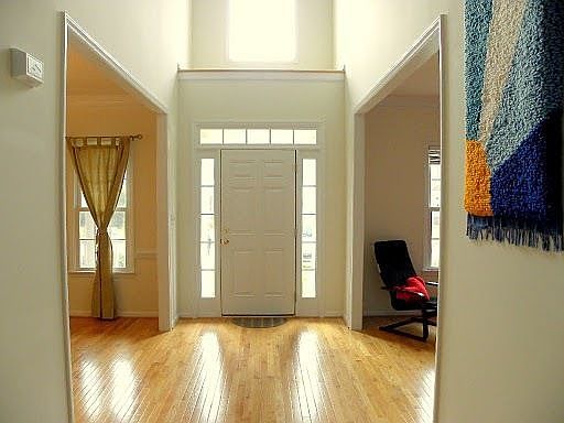 Popular North Wyck flr plan. First flr Mother-in-law ste w/full bath. Hardwood flrs throughout first flr except family and bedroom rm. Kitchen boasts 42" cherry cabinets,Corian Countertops, center island. Formal living/dining.Spacious master and bath w/cathedral ceilings Jet Tub. Huge 2nd flr bonus. Second bedrm has access to full bath. Great location near triangle twn and I540.