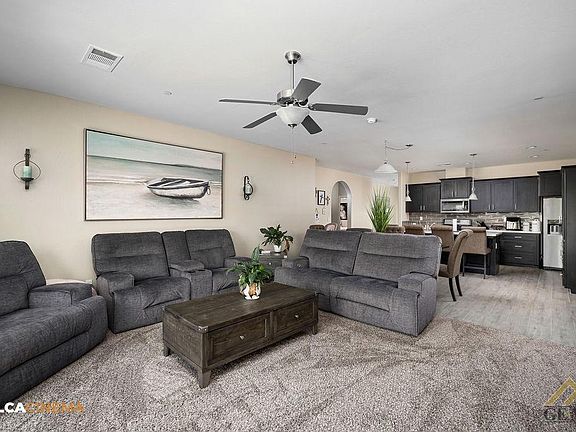 Presenting a Southwest beauty built in 2020 by Burlington Homes! This home has all the ameneties you have been searching for! Walking up you'll notice the attractive curb appeal and steps leading up to the entrance. Inside greeting you will be a large living area, that will lead you into the great room. The large kitchen is boasting with white quartz countetops, breakfast bar, black cabinetry and stainless steel appliances. There is a dining area overlooking the family room with a beautiful large extended sliding door for a lovely view of the back yard. Featuring 4 bedrooms, indoor laundry room, dual sinks in both bathrooms with matching quartz countertops and cabenitry, not to mention a soaking tub in the master bath! Tile is in all the wet areas and pleanty of natural lighting from the many windows in the living areas. Home has a spanish tile roof and is in a newer developing area of bakersfield. Come take a look and make this home yours.