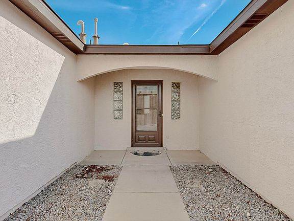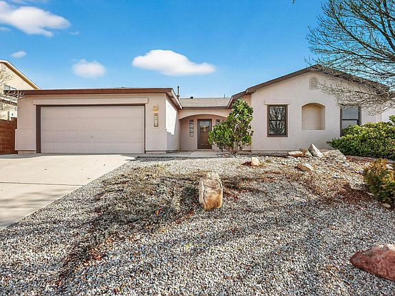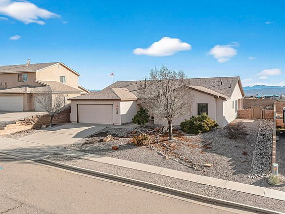 This well-maintained Wallen built home in the Chaco Ridge Subdivision offers breathtaking Sandia Mountain views, featuring stunning morning sunrises and evening alpenglow. Located within walking distance of Vista Grande Elementary School, the home reflects true pride of ownership with upgraded windows, doors, and blinds, along with a newer roof installed in 2021. The primary bedroom is privately situated at the rear of the home, while two additional bedrooms are conveniently located near the kitchen for separation and functionality. An oversized garage with built-in workbenches provides excellent space for woodworking, hobbies, or storage. Move-in ready and ready for its next owner. Several Rooms are digitally staged for inspiration.