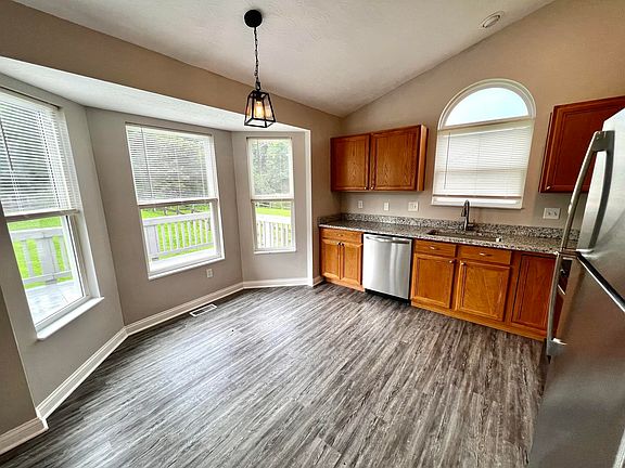 Larger than it looks, 4 four bedroom 3 bath home features a finished basement and 1920 sq ft of living space! Freshly painted with brand new flooring throughout in a neutral gray that's always in good taste. Updated kitchen features brand new granite countertops and new appliances. 3 full remodeled baths! Finished lower level features gas fireplace. Deck overlooks large fenced backyard. Ready to move right in! All this house is missing is You.