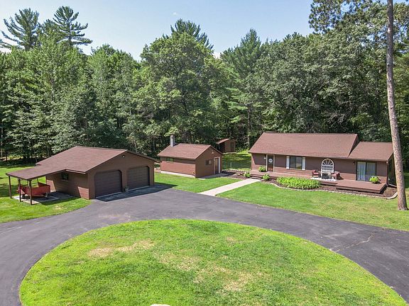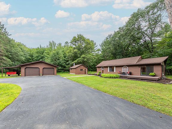 Job relocation brings this sweet property to the market located on 5 acres, just outside of town. It's clean and tidy with a ton of curb appeal, with some nice recent improvements include a beautifully remodeled home office in the accessory dwelling, and a finished 713 square foot game room in the 80x24 garage. The home itself has quality finishes, including custom tile and a perfect arrangement for main floor living with 2 bedrooms and 1 bath along with main floor laundry. The shining quality of the property that sets it apart is the lot of additional buildings which accompany the house. Set nicely around the blacktop circle driveway is a heated modern office, a two stall garage, and a huge garage with workshop, multiple stalls, and currently a finished 31x23 room for entertainment, relaxing, a gym, or whatever your needs are for space. Additionally, there is a hunting shed and garden shed on the site. Bring your boats, sleds, toys and tools, this is ready to go!