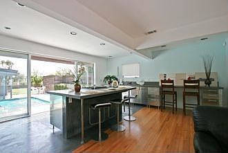 Artsy modern home remodeled by Taalman & Koch, Architects (see www.taalmankoc.com the Goldstein house). Two bdrms were combined to make one very large, spacious bedroom with lots of closets, sitting area and wall to wall, floor to ceiling glass doors opening to diving pool and pool house. Ultra modern kitchen with stainless steel. Hardwood floors throughout. Fireplace. Located at the top of Tellefson Road on the Culver Crest one of those little known, elite hillside areas sitting atop the City with magnicent views. Views from the back yard. You must see this one!