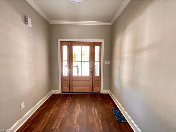 Welcome to your future home – a stunning one story gem designed for modern comfort and convenience. As you step inside, you'll be greeted by the elegance of luxury vinyl plank floors that span through the common areas. The Kitchen is a true culinary delight, boasting white cabinets, central island, sleek stainless steel appliances, solid surface countertops,tiled backsplash, and a walk in pantry. In the heart of the home, a welcoming fireplace with gas logs adds an element of coziness to the open living, dining, kitchen area. Dedicated laundry room makes daily chores a breeze. The Primary suite is a true retreat and features private bath with double sinks, custom tile shower, relaxing soaking tub, spacious walk-in closet.Split-bedroom floorplan provides the privacy you desire.Throughout the home,you'll find crown molding,adding a touch of sophistication to the décor.Step outside and you'll discover covered back porch,perfect for sipping your morning coffee or relaxing in the evenings.