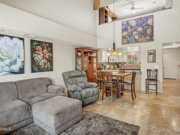 This Mountain Oaks Townhome hits every base in the ball Park. From Home plate you enjoy an open great room living space with vaulted ceilings and cozy fireplace. Rounding 1st you must stop at the nicely remodeled kitchen for a snack! The upper level/ 2nd base has multi purpose space with a guest suite, office / mini theatre and large loft with a Murphy bed/ 4th bedroom option. Heading to 3rd is the out field view of Mt Elden and HOA open space from the deck. Shade out with the retractable awning before heading to the Primary Bedroom and remodeled bath on the main level to complete the Run!