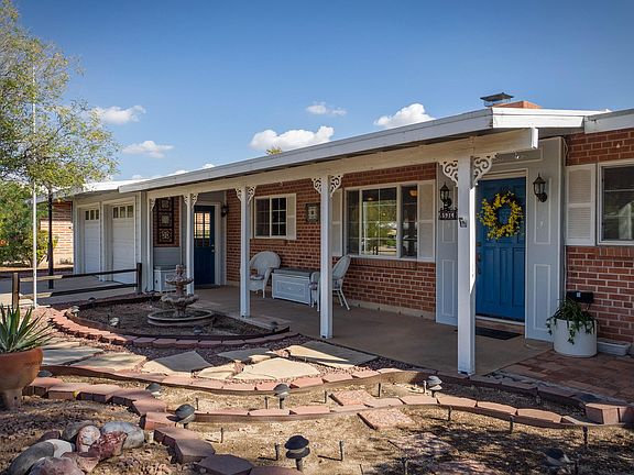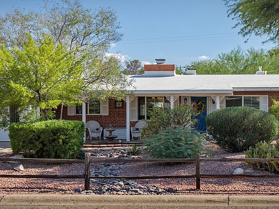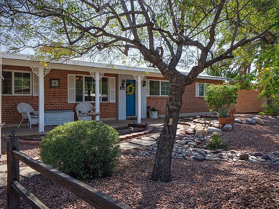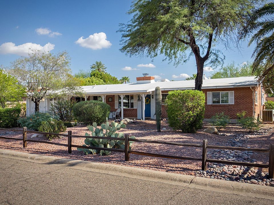 An absolute treasure that offers so much more than meets the eye. Over one quarter of an acre in the middle of town will entice you to relax in one of many spaces. The home is sited deep on the lot with a gracious front porch for lounging and gazing at the mesmerizing Catalinas. The backyard is equally enticing with a waterfall and pond as well as a privacy wall. Mid century red brick ranch home offers tons of STORAGE and a craft room with built-in shelves. The master bedroom offers a bonus space and exits to a private patio overlooking the backyard. THIS KITCHEN! Pantry storage combined with solid surface counter tops, recessed lighting and solid wood self closing cabinets and drawers complete with appliances provide for easy meal time pleasure. The guest house is well integrated and delightful space. Bring your recreational vehicle!