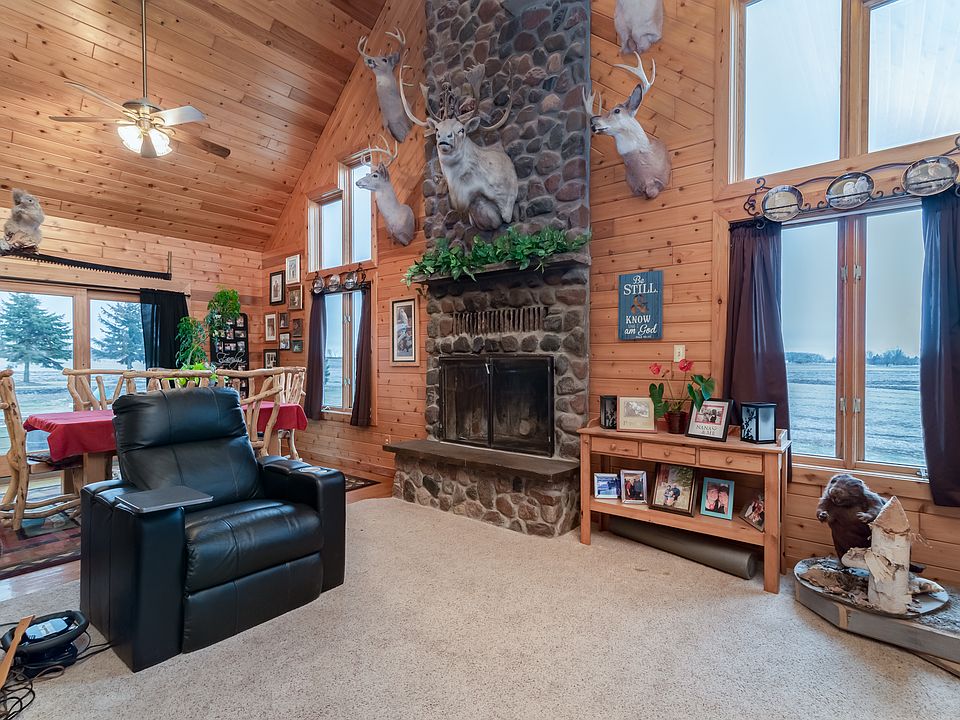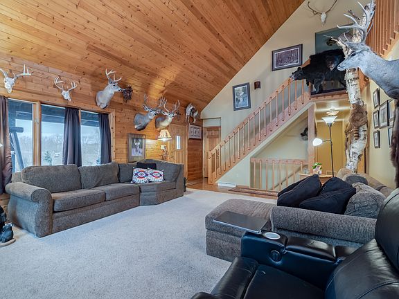 Completely Custom Style 1.5 Story Home sitting on three private tree lined acres. Enjoy the two large outbuildings for your recreation or business. Huge driveway, plenty of parking for all your toys. Inside of this beautiful home you'll find a spacious foyer leading to custom, open concept great room with floor to ceiling masonry fireplace with vaulted ceilings. Formal Dining Area. Open concept Kitchen with corian countertops, snack bar, plenty of cupboard and counter space and hardwood floors. Main floor laundry room. Main level Master Bedroom. Three generous sized bedrooms upstairs. Enjoy the upstairs loft overlooking your beautiful home. Finished rec room in the basement. Come make this amazing custom home inside and outside your own.