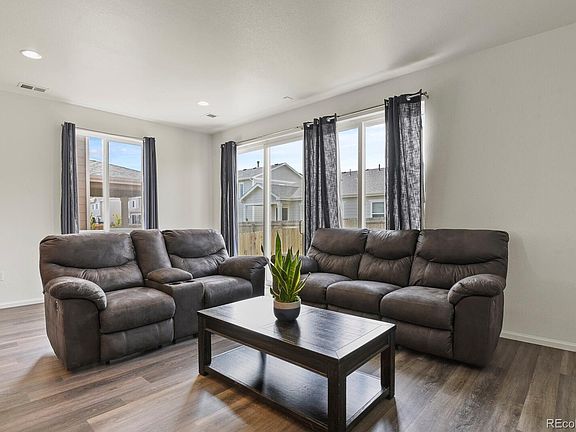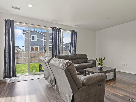 This ranch-style floor plan offers an open layout that’s perfect for relaxation or entertaining. The living area features LVP, granite countertops, and abundant natural light due to an additional window (structural upgrade at the time of build) in the dining area. Gather with friends and family in the expansive great room, dining room and kitchen. This home is just a little over a year old and better than new! Lighting has been added to the dining room, lighting has been added to the garage, USB plugs have been added to the outlets, and a TV wire box was installed in the owner's bedroom.  The owner's bedroom has a large walk-in closet and a private bath with a double sink. This home also includes an additional bedroom and full bathroom. The dining area could be used as a home office or flex space. The backyard has been landscaped, has a full privacy fence, and both the front and backyards have sprinkler systems in place. This home provides easy access to I-76,  Highway 85 and DIA.