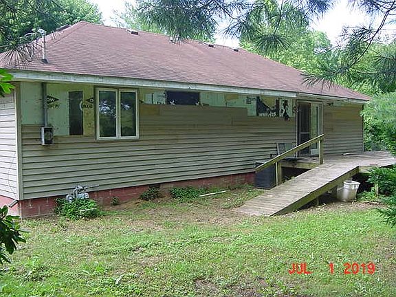 Imagine a circle drive around the house with separate ingress and egress and parking under the trees on the 2nd lot. some landscaping would look good too. Price reduced! Now $13300. Executor believes it to be 25 years old. Ranch style on two lots in Johnstown community on the outskirts of Bicknell. Shell in sound condition including roof. 200 A Breaker box. Large deck outside in the back. Has septic system so no sewage bills, only water. Needs work inside and out but can be a great fixer-upper. Can be a 'diamond in the rough'! Not a great amount of work can make this a home to be proud of. Use your imagination to fix it the way you want it. Recently discovered that some of the wiring is missing, the amount is undetermined. A recent accident left two holes in a living room window.