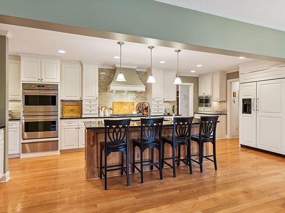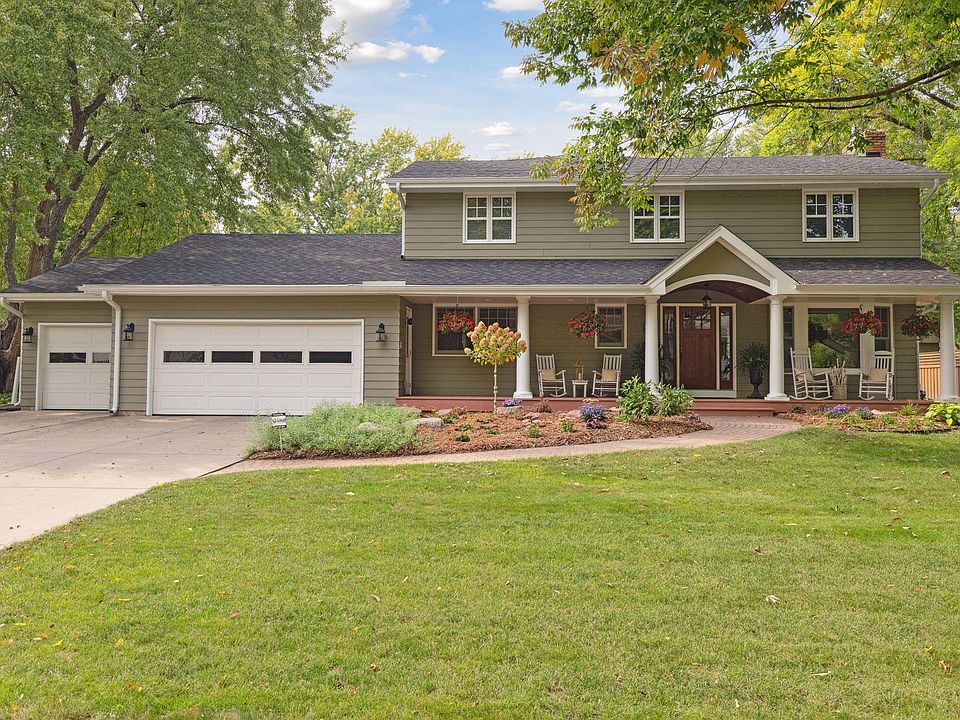 Welcome home to this fabulous two story gem with all the spaces you hoped and dreamed for. Beautifully updated and in move in condition, this charming house is tucked away on a quiet cul de sac of homes with easy access to Walnut Ridge Park and the Nine Mile Regional Trail system. Dreamy front porch with room for you and your friends. Spacious entry space opens to gorgeous living room anchored by a beautiful fireplace. Wide plank hard wood floors throughout the entire main floor. Well-appointed center island kitchen opens to main floor family room and large dining room with see through fireplace between them. Main floor office with brick wall and wood burning fireplace that opens to a cozy, cedar 3 season porch. Ample mudroom. 5 BR's upstairs including a primary suite with double walk in closets, a gorgeous full bath with separate tub and steam shower. 2nd floor laundry. The basement has a 3/4 bath, sweet kitchenette/wet bar, ample play space and media space, great storage and more.