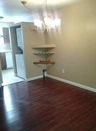 Charming 2-story townhome, updated with nice new cabinets, bathroom fixtures, hardwood floors, new carpet upstairs. Small fenced patio. Stackable washer and dryer included. All utilities except electricity included in the rent.Prefer no pets but may consider one with good rental history and references.