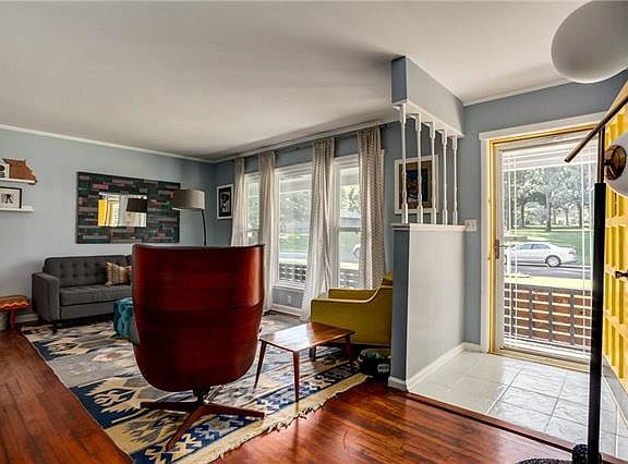 Bring your family home to this fabulously finished and updated home! Featuring two living spaces- one formal and one cozy- as well as a bonus space in the unique addition off the back Ideal for entertaining or unwinding! Home boasts a generously appointed eat in kitchen and large separate dining area. Three bedrooms and 1.5 baths along with a covered front porch and large backyard finish this home off! Green space across the quiet street. You won't want to miss this one! It's adorable and has a great vibe!