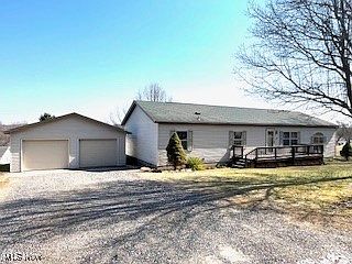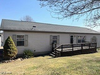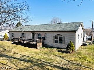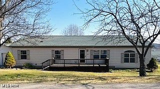 This 2001, well maintained modular home sits on a (100 x 110) 11.000 sq. ft. tree lined lot in the Village of Byesville. Featuring 3 beds and 2 full baths, a large den/living, dining and kitchen areas with laundry/mud room, with outside access. Many of the rooms are finished drywall. The home sits on a 27 x 64 block, vented crawl space with detached 2 car garage. Both have finished cement floors. Three large wooden decks (1 front and 2 rear) complete this great starter or retirement home. An extra lot (100 x 110) is included in the purchase. City water and sewer. ALL APPLIANCES and Washer/Dryer INCLUDED in sale.