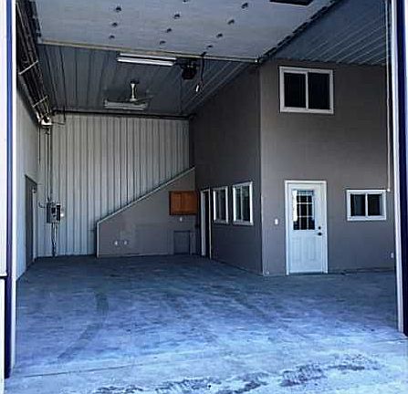 Currently finished as office space. 30 x 40 open office area. 16 foot ceilings and 14 foot overhead doors. Bath and kitchenette on main floor. Loft area with 2 additional office spaces.
