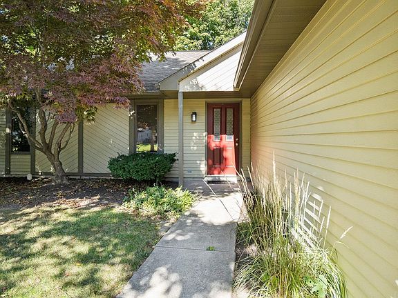 Mature trees surround this 1286 Sq-Ft Ranch with 3-bedrooms and 2 full baths, located in Concord Hill NE Allen County. The entry foyer leads into the large living room with cathedral ceilings, a skylight, a stone corner fireplace, and a full glass door for access into the shaded back yard. The kitchen is open to the eat-in dining area with a 3-sided bay window. The master bedroom has high ceilings and a private master bath. All kitchen appliances are included. HVAC system new in 2018. Roof new in 2006.