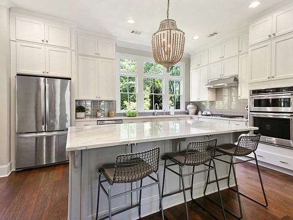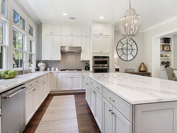 - Kitchen Features: Eat-in Kitchen, Pantry, View to Family Room, Stone Counters, Kitchen Island, Breakfast Room, Cabinets White