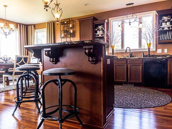 Exquisite From Top-To-Bottom and Custom Built by Hallmark Homes! This home is situated on approximately 1.5 acres and surrounded by mature trees! Loaded w/amenities: including Brazilian Tiger Wood Flooring, Custom window treatments, White Trim, Filtration system, Water Softner, Radon Mitigation System, Maintenance free deck, 8 Zone Sprinkler System, and much more! The Magnificent kitchen displays rows of cherry cabinets, granite countertops, under cabinet lighting, large center island, plus walk in pantry! The spacious living room w/pillars to the foyer add a perfect touch to this home! The dining opens to the kitchen & living room where this will be the ideal space for gatherings. The Expansive master suite includes large windows, claw-foot tub, walk-in shower & spacious walk-in closet. The main floor laundry is huge & located adjacent to the garage. There is plenty of room to entertain in the huge lower level. The family room and game area offers a walk-out to a patio overlooking the treed backyard w/ over 80 mature trees, perennials, shrubbery and sprinklers. There are three additional bedrooms ( one is currently occupied as an office area) full bath & Storage room w/ cabinets and counterspace w/ access stairs to the Oversized 1146 sq ft garage. If garage amenities are important, you will not be disappointed. There is also a detached 24x26 garage. Newer water heater, siding, gutters, shingles.