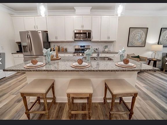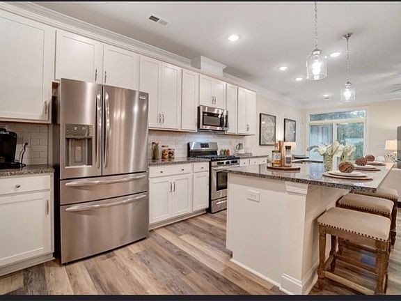 Brand new townhomes ! in Matthews, convenient to shopping, dining, and recreation! This home has 3 bedrooms, 2.5 baths, and more than 1,800 square feet. The foyer with tray ceiling leads into an open kitchen, dining, and family room area. The kitchen features stone gray cabinets, granite counters, a tile backsplash, and stainless appliances including a gas range and refrigerator. Enjoy the outdoors on the rear covered porch. Beautiful enhanced vinyl plank flooring runs throughout the first floor. The bedrooms are on the 2nd floor, along with a loft area, hall bath, & laundry room. The owner's suite features a large walk-in closet, and the owner's bath has a double-bowl vanity & a tiled shower with seat and semi-frameless door. Other upgrades include craftsman-style interior wood trim and a bead-board drop zone. Ask about Smart Home features INCLUDED in this home! Visit today to find out more about this community with easy access to shopping, parks, and I-485. Owner pays for HOA dues,which includes Trash. Property address is 2111 Bexar Trail in McKee Glenn townhome community. Accepting applications from prospective tenants. Kitchen photos with furniture/decor are pictures of model home for representation only.