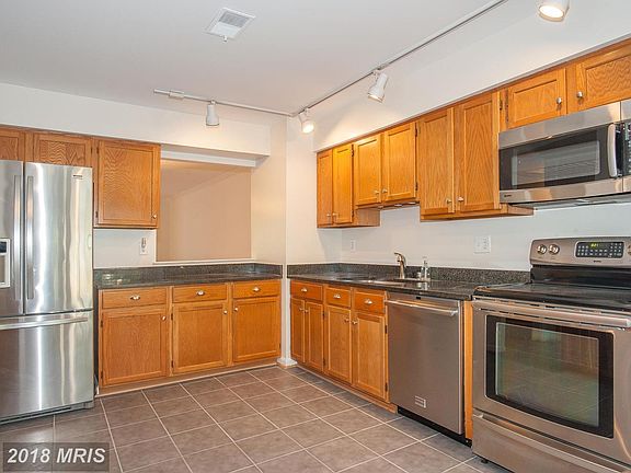 Move-in ready TH backs to trees & boasts a 2-lvl bumpout, wood floors, new carpet & lovely eat-in KIT w/granite, stainless apps & bay window. Spacious living rm w/frplc has SGD to great deck. Airy cathedral ceiling & skylight in master suite & MBA has dual sink & shower-tub. 2 add~l BRs share hall BA. LL offers laundry rm, storage rm, full BA & large rec rm w/frplc & SGD to fenced yard. Near 495!